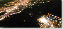 | A ) | Shot of lights at night from